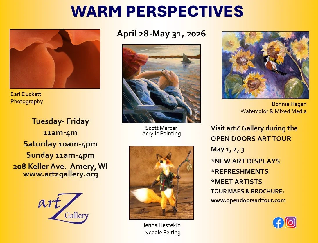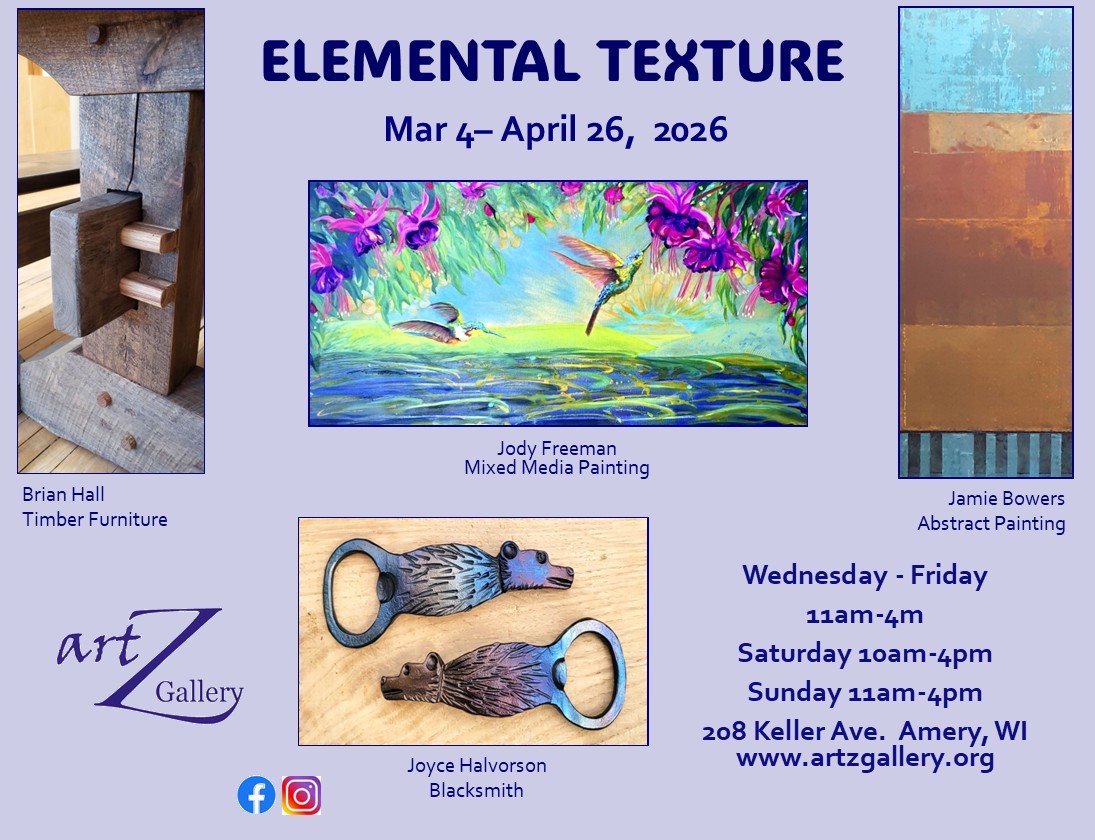 artZ Gallery combines qualities seen in metropolitan galleries with the warmth and charm of a small town experience. Stop by and take a look for yourself! Located at 208 Keller Ave N in Amery, WI