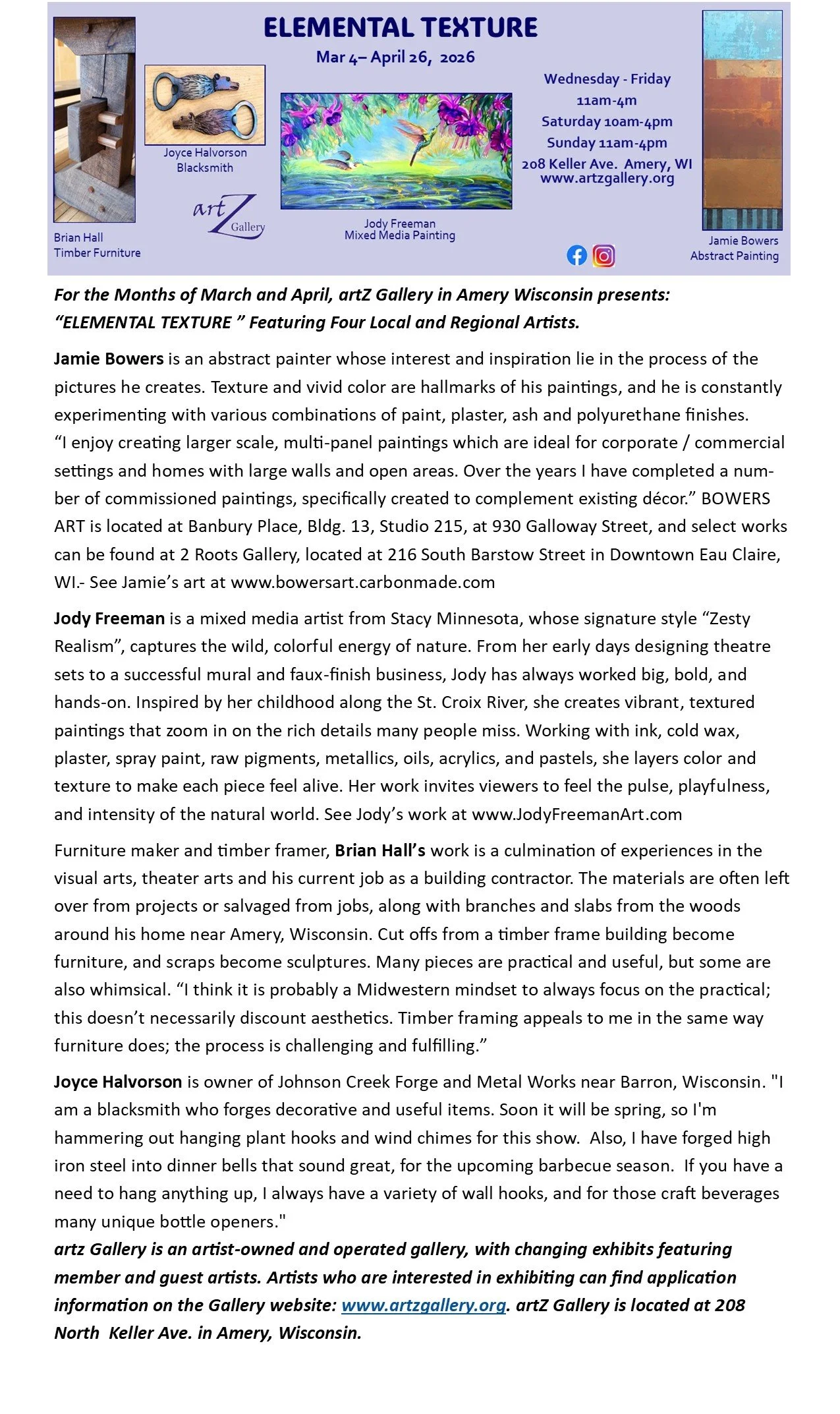 Hours-Wednesday thru Friday 11-4, Saturday 10-4, Sunday 11-4.